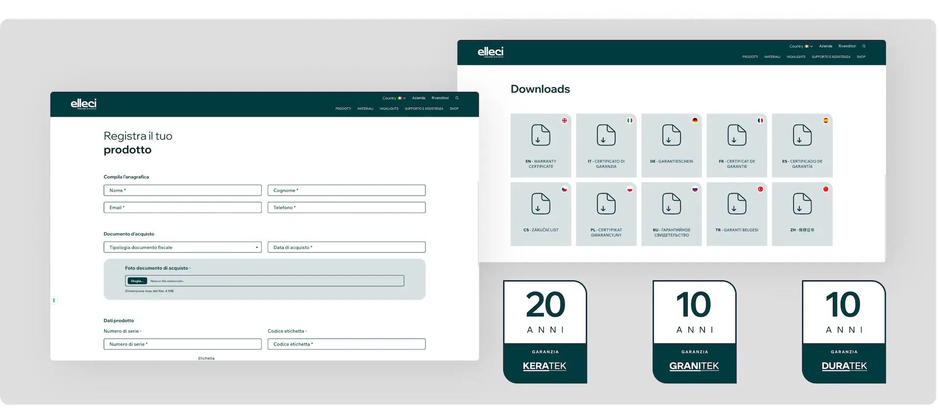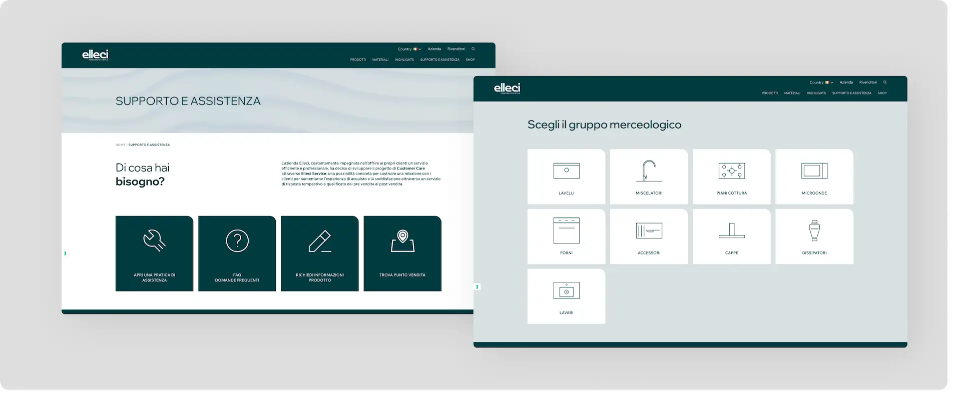 Per ottimizzare l'esperienza post-vendita del cliente, abbiamo riprogettato diverse sezioni del sito, integrando funzionalità come lo Shop Elleci, lo Store Locator, la registrazione del prodotto e l'apertura di pratiche di assistenza.